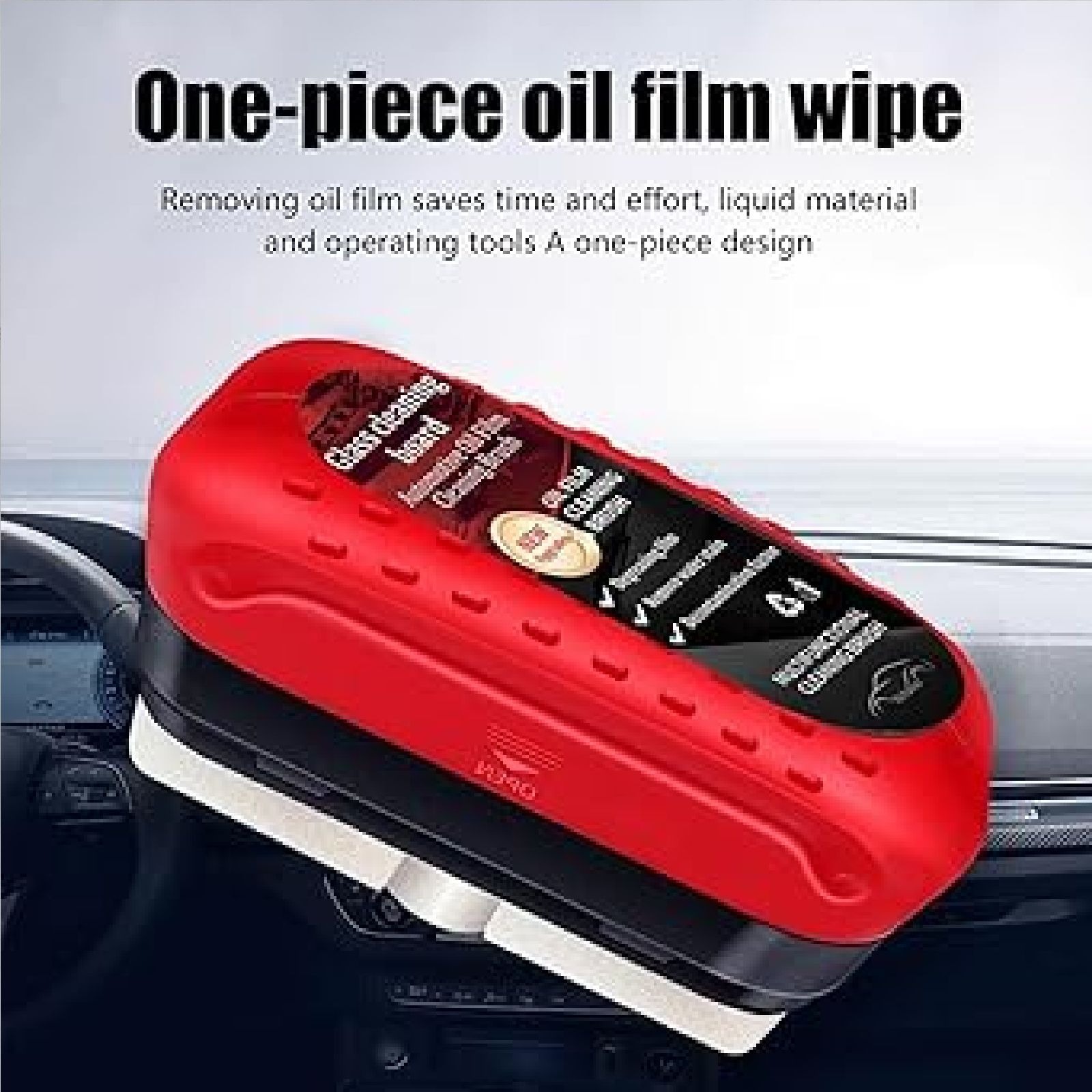 - ?Easy cleaning?With an integrated liquid brush, our car glass oil film cleaner makes it easy to hold and clean those difficult to reach corners. Experience a no hassle and crystal-clear car ride.